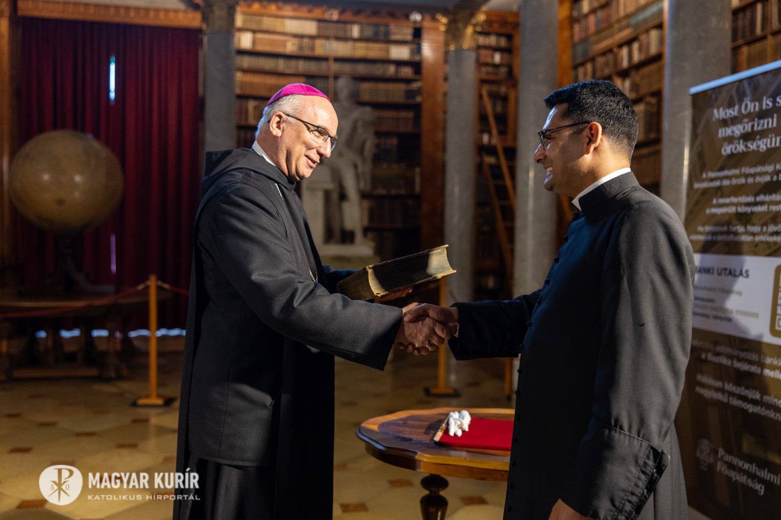 2026. március 26.Március 21-én, Szent Benedek ünnepén Majlát Tihamér plébános, a Celldömölk-Alsósági Szent Miklós Plébánia vezetője a könyvtárban rendezett ünnepségen átadott egy olyan kötetet, amely legalább 240 éve elhagyta Pannonhalmát. A bajor, de hazánkban is működő jezsuita, Matthias Faber Concionum Sylva nova seu Auctarium (Köln, 1695) című munkáját – a possessor-bejegyzés szerint – 1715-ben szerezték be a pannonhalmi konvent számára. A bejegyző egy másik információt is megörökített a kiadványban: a prédikációskötetet Villebald atya használta.